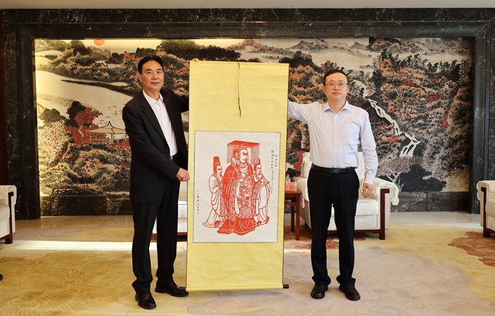 活动开始前,张青松代表焦裕禄干部学院向枣阳市委赠送了文创产品《焦桐颂》,孔令波代表枣阳市委向我院回赠了枣阳非遗剪纸《东汉王朝开国皇帝刘秀》。双方还就如何加强合作进行了交流探讨,大家畅所欲言,交换着彼此的思路和看法,共同寻求促进合作更加紧密、交流更加深入的有效途径。