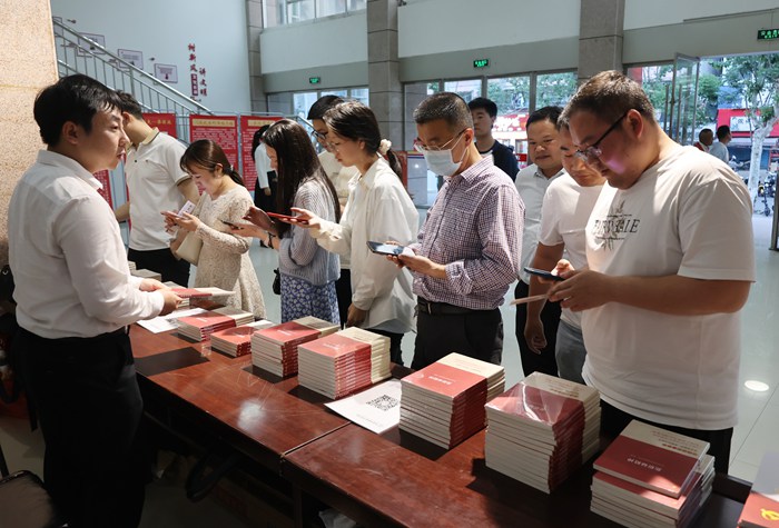 当天晚上,会场外的“焦裕禄精神专题展览”红色阵地格外引人注目,学员们在焦裕禄精神主题展板和系列图书前驻足,大家一边浏览观看,一边聆听我院教师的细致介绍,有序领取焦裕禄精神系列丛书,满怀期待走进会场等待即将开始的课程宣讲。